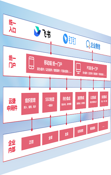对协作平台提供支持服务,,支持企业应用与协作平台对接,,包含组织同步、、、、消息集成、、、待办集成等。。。支持目前主流的协作平台:钉钉、、、、企微和飞书。。。。
